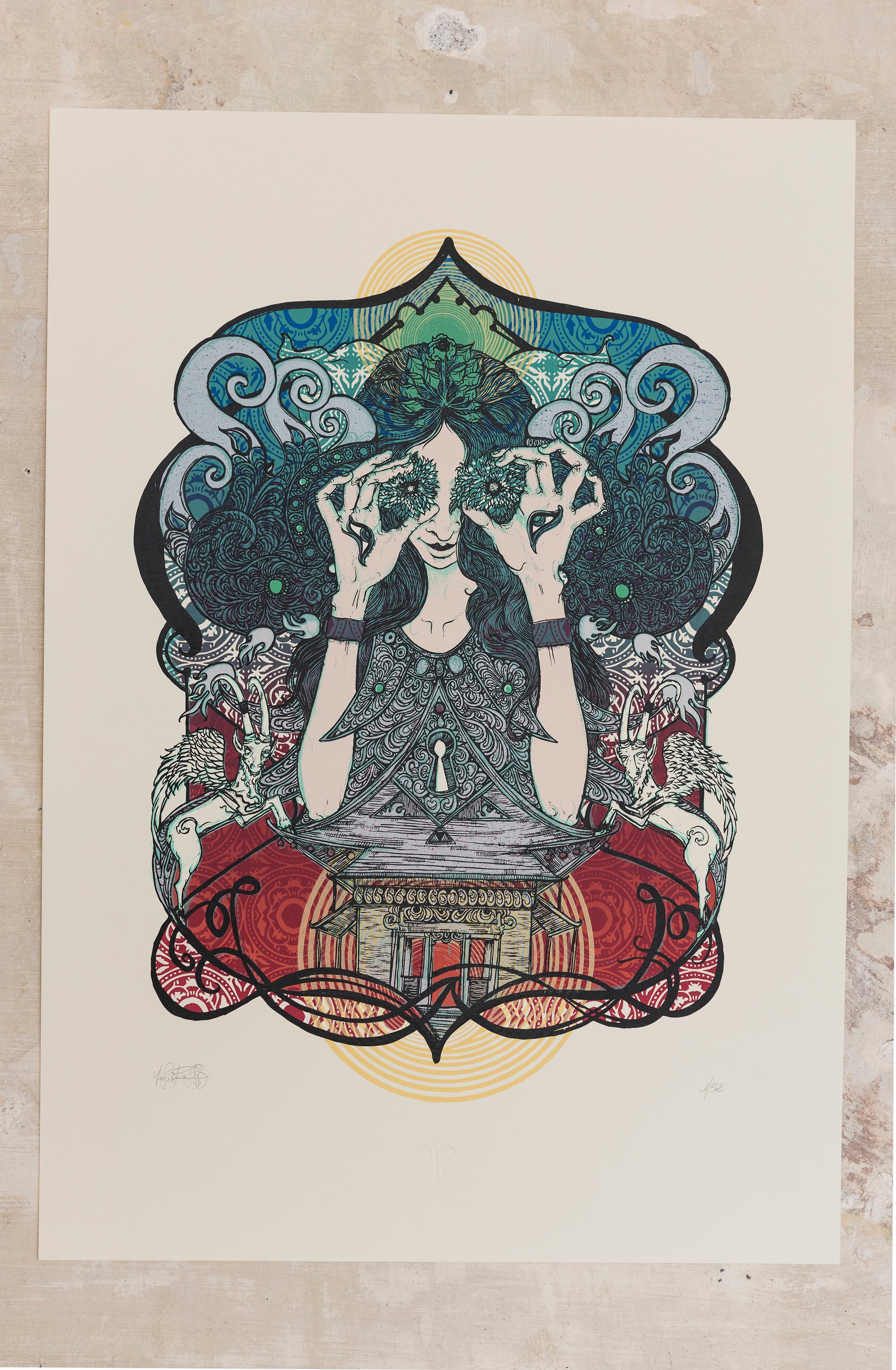 Handmade silkscreen print Limited edition Run 52 copies 8 colours on ivory paper 300gr Signed and numbered